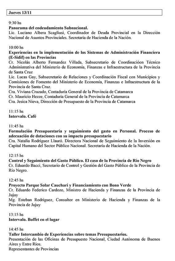 El evento contará con la presencia de funcionarios nacionales, provinciales y municipales de Argentina, y se abordarán temas fiscales, presupuestarios, tributarios y de estadísticas, entre otros, incluyendo, además, un taller de intercambio de experiencias y un espacio para abordar cuestiones de índole municipal.